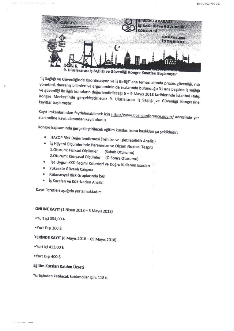 Türkiye Odalar ve Borsalar Birliği’nden Odamıza, 9.Uluslararası İş Sağlığı Güvenliği Kogresi konulu yazı gelmiştir. 13.04.2018 tarih ve 6080 sayılı yazı ilişik bulunmaktadır.