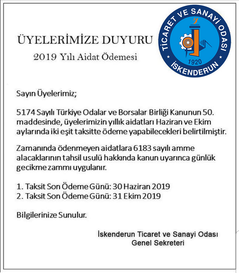 Türkiye Odalar ve Borsalar Birliğinden gelen 2019/6 Sayılı Genelge konulu yazısının duyuru metni mailde bulunmaktadır. İlgili firmalarımızın bilgisine rica olunur. Saygılarımla, Yönetim Kurul...