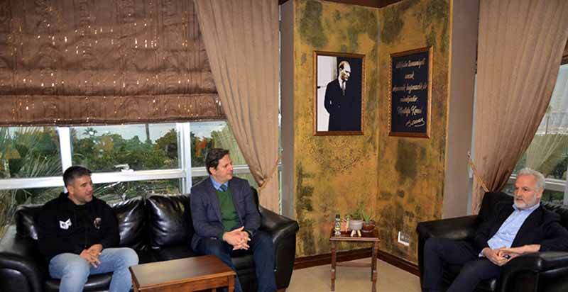 Güney Akademi Gençlik ve Spor Kulübü Başkanı ve Antrenörü Nebil Özdemir ve İdari Sorumlu Köksal Yancı, İskenderun Ticaret ve Sanayi Odası Yönetim Kurulu Başkanı Levent Hakkı Yılmaz’ı ziyaret ettiler.