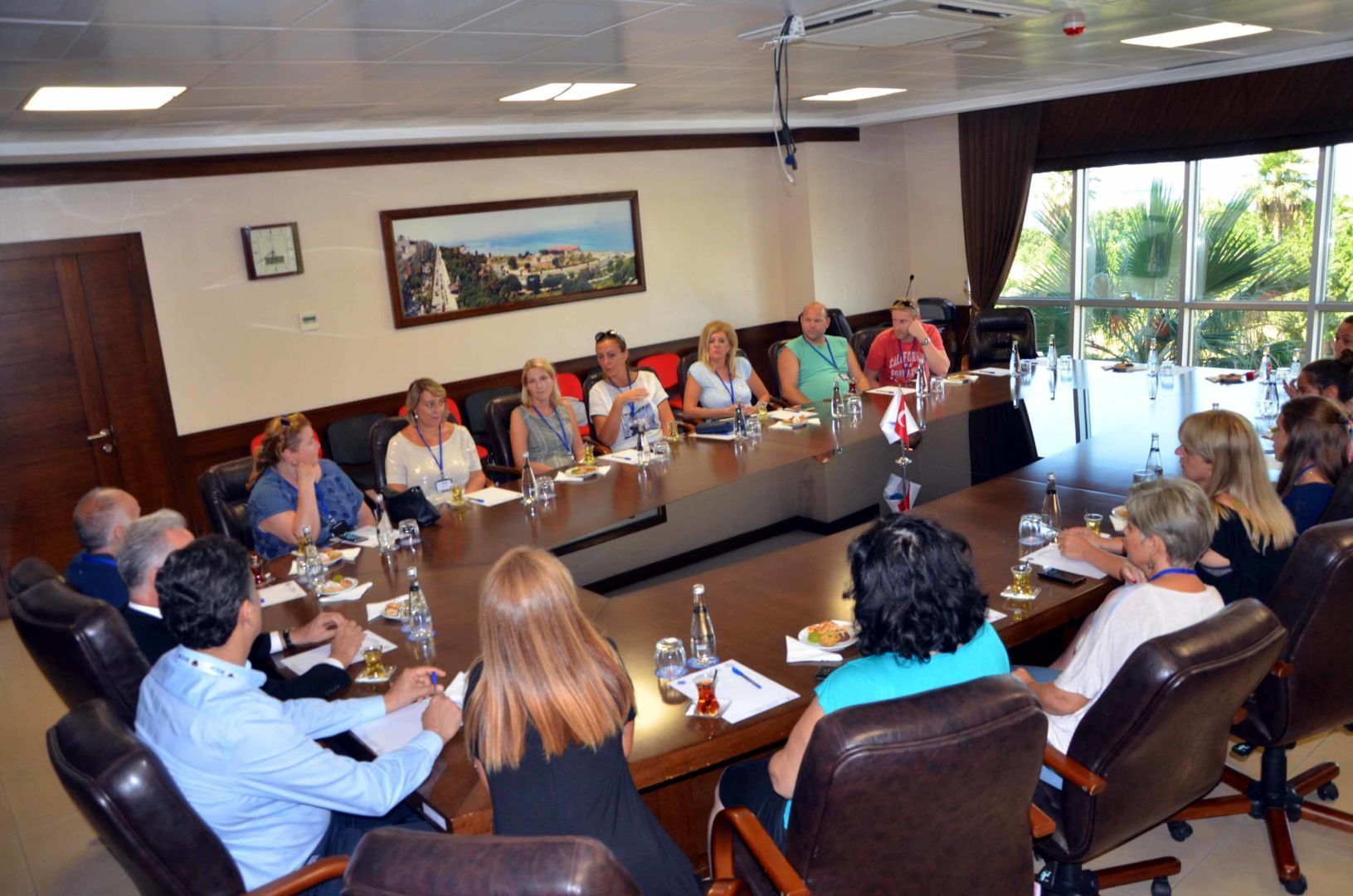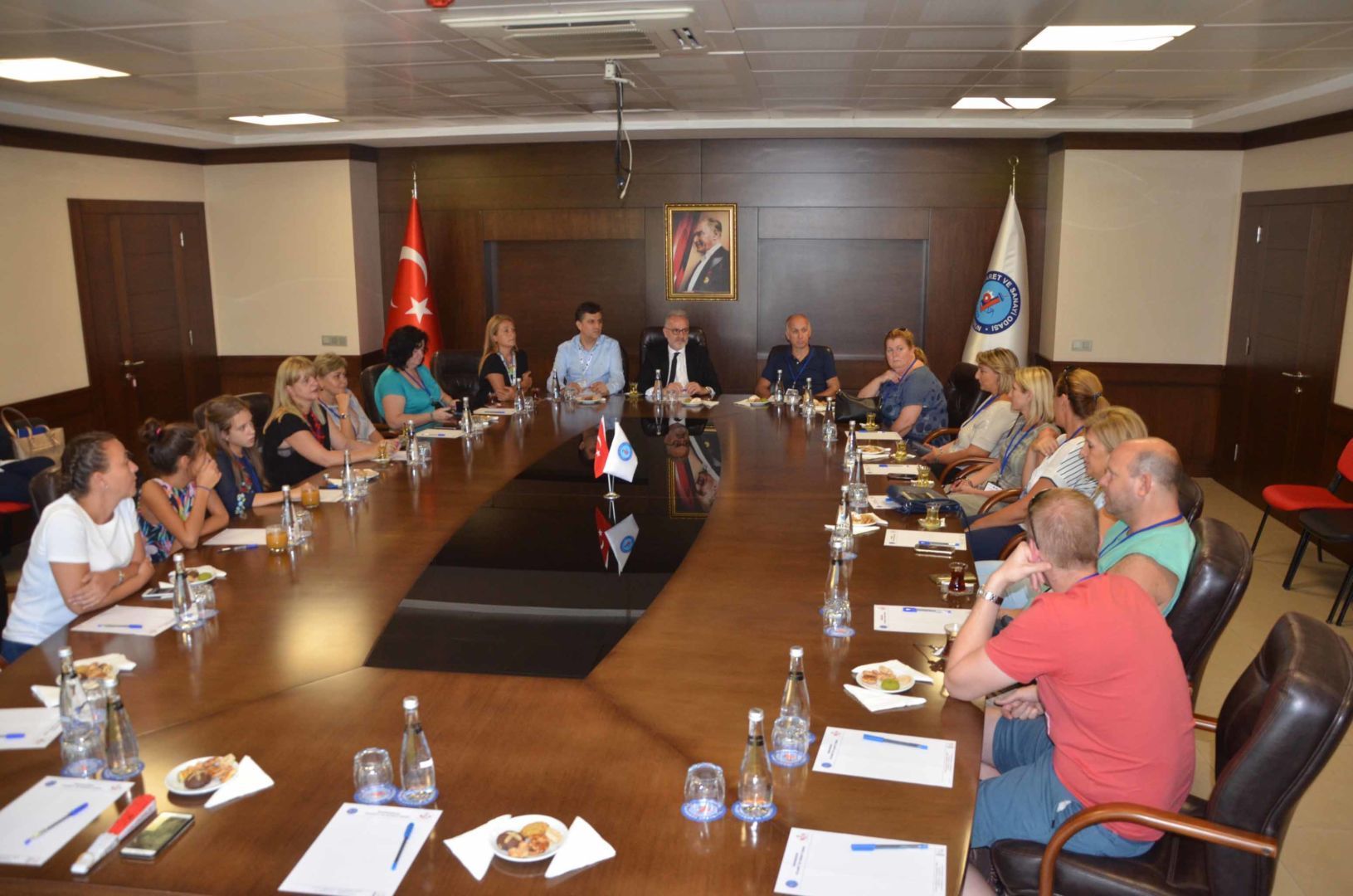 İKEM Koleji’ne ERASMUS+ Projesi kapsamında Avrupa’nın çeşitli ülkelerinde gelen öğretmen ve yöneticiler gezi programı kapsamında İskenderun Ticaret ve Sanayi Odasının Meclis Salonunu ve teras katını da gezdiler. İskenderun Manzarasına hayran kalan misafirler teras katında bol bol fotoğraf çektiler. Avrupa’nın çeşitli ülkelerinden gelen eğitimcilerin 4 gün süre ile Hatay’ın tarihi ve turistik mekanlarını da gezecekleri bildirildi.