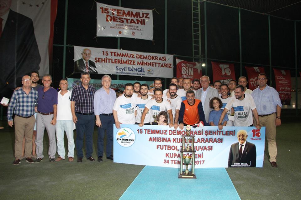İskenderun Belediyesi Tarafından 15 Temmuz Demokrasi şehitlerini anma, kurumlar arası Futbol turnuvalarında dostluk kazandı. 27 Takımın kıyasıya mücadele ettiği müsabakalarda Hatay Barosu Futbol Takımı birinci olurken, İSTE ikinciliği, İskenderun Ticaret ve Sanayi Odası’da üçüncülüğü elde ettiler. Turnuvanın final maçını protokol ile birlikte izleyen İskenderun Belediye Başkanı Seyfi Dingil, turnuvaya katılan takımları tebrik etti ve dereceye giren futbolculara kupalarını takdim etti. İskenderun Ticaret ve Sanayi Odası Başkan Yardımcısı Muhsin Yeter de kupa töreninde hazır bulundu ve derece elde eden takımları tebrik etti.