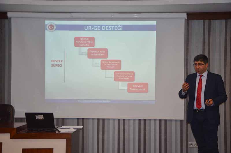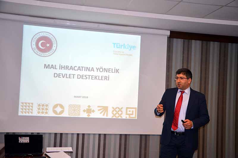 İskenderun Ticaret ve Sanayi Odasında, T.C. Ekonomi Bakanlığı’nda görevli Dış Ticaret Uzmanı İsmail Bozdemir, UR-GE Projeleri ve ihracata yönelik Devlet yardımları ve teşviklerle ilgili üyelere bilgiler verdi.