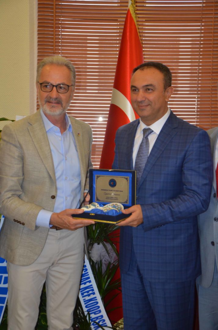 İskenderun Ticaret ve Sanayi Odası yönetim kurulu üyeleri, İskenderun Kaymakamlığı görevine atanan Recep Soytürk’e hayırlı olsun ziyaretinde bulundular. Dörtyol Kaymakamlığı görevinden İskenderun Kaymakamlığına atanan Recep Soytürk’e yeni görevinde başarılar dileyen İTSO Başkanı Levent Hakkı Yılmaz, ziyarette yaptığı konuşmasında; “Yönetim kurulu arkadaşlarım adına yeni görev yerinizde başarılar diliyoruz. İTSO olarak birlikte şehrimizin ekonomisine, sosyal gelişimine katkı sağlamayı temenni ediyoruz” dedi. Ziyaretten ötürü memnuniyetini dile getiren İskenderun Kaymakamı Recep Soytürk ise; İTSO yönetimine iyi dileklerinden dolayı teşekkürlerini iletti. Karşılıklı sohbet ortamında geçen ziyarette ağırlıklı olarak, şehrin ekonomik yapısı ve genel durumu hakkında fikir alış verişinde bulunuldu. İskenderun Kaymakamı Recep Soytürk’ün ziyaretinde, İTSO Başkanı Levent Hakkı Yılmaz, İTSO Meclis Başkanı Servet Ugutmen, İTSO Başkan yardımcısı Muhsin Yeter, İTSO Muhasip üye Necat Özkaya, İTSO yönetim kurulu üyeleri Bülent Seküçoğlu, M.Ali Bulut, Okan Belli ve İTSO Genel sekreteri Figen Gül Dönmez de yer aldılar.
