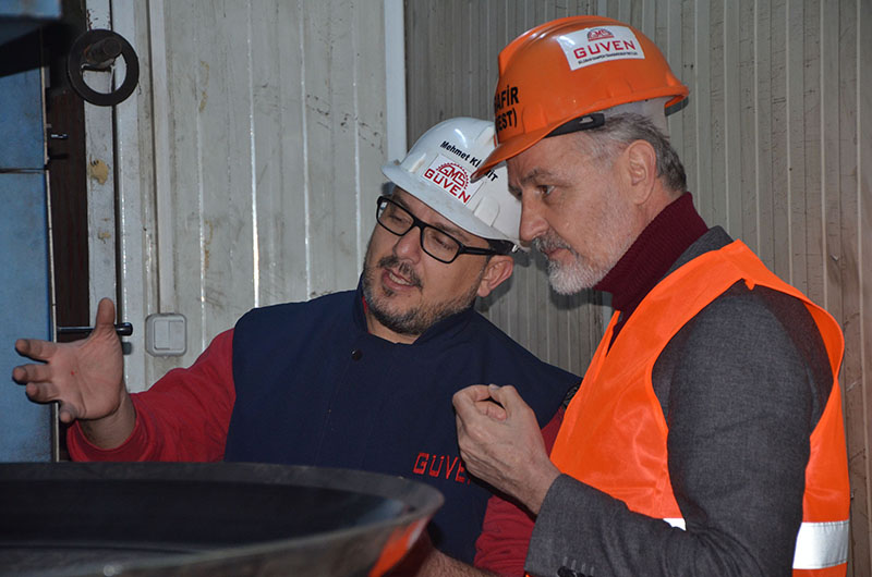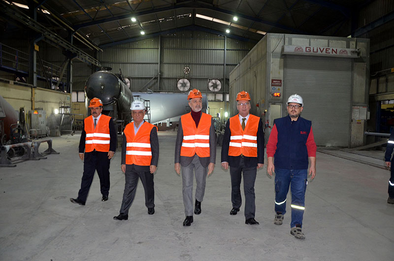 İTSO Başkanı Levent Hakkı Yılmaz, İTSO Başkan yardımcısı Muhsin Yeter ve İTSO yönetim kurulu üyesi Gassan Kuran, Güven Makina Tesislerini ziyaret ederek, Güven Makine yönetim kurulu başkanı Cemil Kirmit, Genel müdür yardımcısı Metin Kirmit ve İmalat müdürü Mehmet Kirmit ile görüşerek, çalışmalar hakkında bilgiler aldılar.