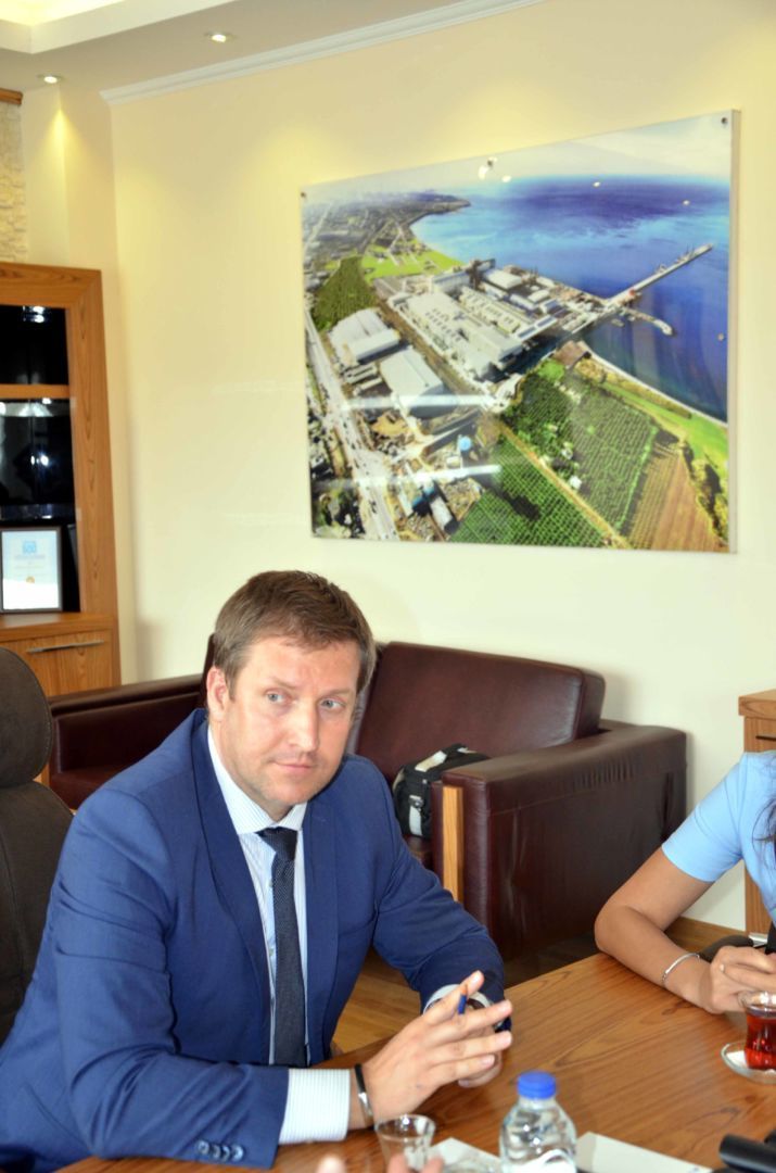 MMK Metalurji sanayi A.Ş. Genel Müdürü Kvasov, ziyarette yaptığı konuşmasında; “Hatay’ın tarihi, doğal güzellikleri ve coğrafi yapısı itibari ile önemli bir potansiyele sahip. Bulunduğumuz yer de öyle. Bölgemizdeki en büyük limanlardan birine sahibiz. İhracatta önümüzdeki dönemlerde ciddi oranda artışlar bekliyoruz. Çalışmalarımıza yoğun bir şekilde devam ediyoruz. MMK olarak bölge insanına istihdam ve ülke ekonomisine de katma değer sağlıyoruz. ” dedi.