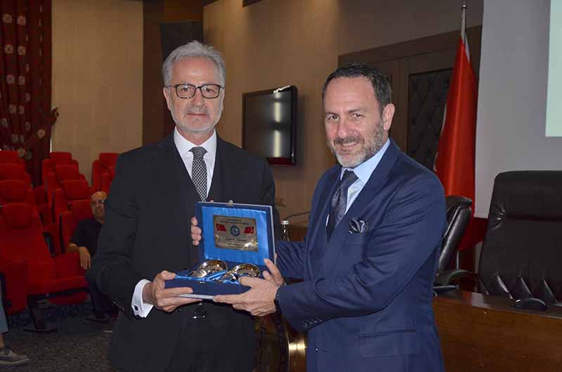 Prof.Dr. Emre Alkin, yaptığı açıklamasında; “Teknolojinin hızla geliştiği ve artık elektronik ortamda ticaretlerin yapıldığı, Endüstri 4.0’dan sonra Endüstri 5.0’ın konuşulduğu günümüzde Fiyat, üretim ve dolaşım alanı arasındaki çelişkide kim daha güçlü ise onun yönlendirmesi ile fiyatlar oluşmaktadır. Teknoloji üretimi ve teknoloji yatırımında atılım ve cesaret çok önem arz etmektedir. Günümüzde artık yatırım ve istihdamdan ziyade dünyada çok büyük gelirler elde eden ve bu gelirlerini teknoloji sayesinde kuran firmalar dünya piyasalarında söz sahibi olmuşlardır. Buna örnek verecek olursak, dünyanın en önemli kaynağı artık petrol değil veri tabanı (Data) olmuştur. Önümüzdeki 10 yıl içerisinde 5 risk beklenmektedir. Bunlar Nükleer savaş, Doğa olayları, Doğal afetler, su krizleri önemli etkenler arasında yer alacaktır” dedi. Altınbaş Üniversitesi Rektör yardımcısı Prof.Dr. Emre Alkin, son günlerde ekonomideki hareketlilik ve doların artışı ile ilgili de değerlendirmelerde bulundu. Bilgilendirme toplantısının sonunda ise İTSO Başkanı Levent Hakkı Yılmaz günün anısına Altınbaş Üniversitesi Rektör yardımcısı Prof.Dr. Emre Alkin’e Kahve ve fincan takımından oluşan plaketi takdim etti.