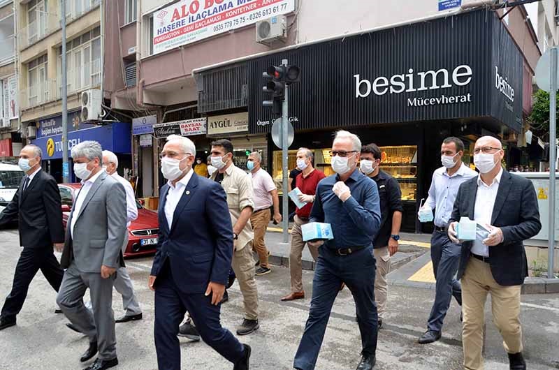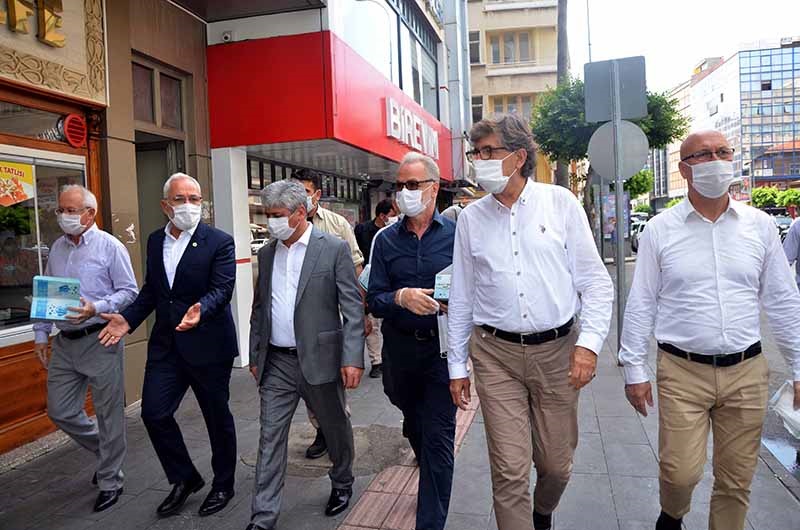 İTSO Başkanı Levent Hakkı Yılmaz ve Başkan Yardımcısı Muhsin Yeter Vali Rahmi Doğan ve Protokol ile birlikte maske denetimine katıldılar