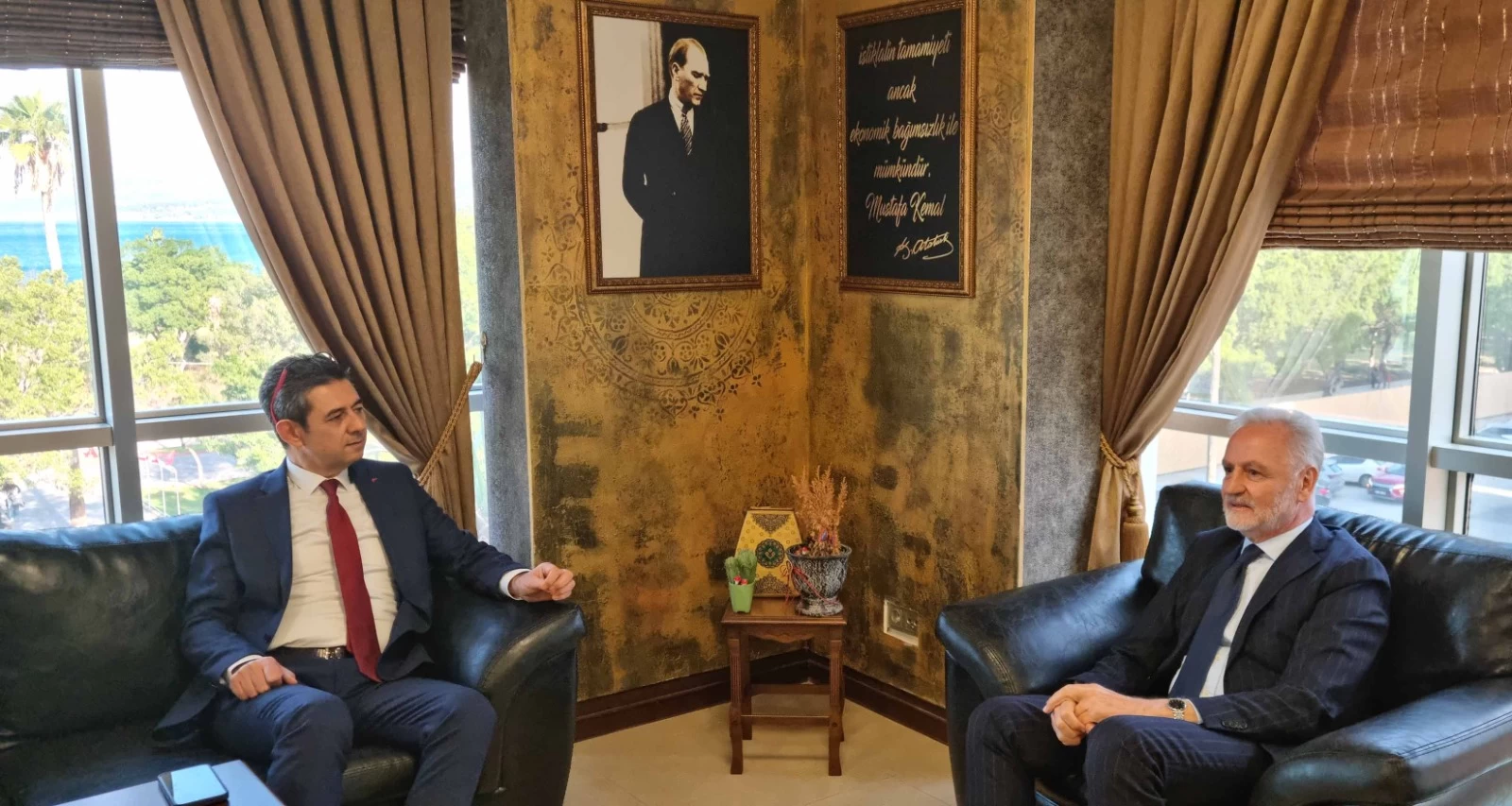 Hatay İl Müftüsü Mevlüt Topçu, İskenderun Ticaret ve Sanayi Odası Başkanı Levent Hakkı Yılmaz’ı ziyaret etti. Depremde zarar gören ibadethaneler ve yapım-onarım süreçleri üzerine fikir alışverişinde b...