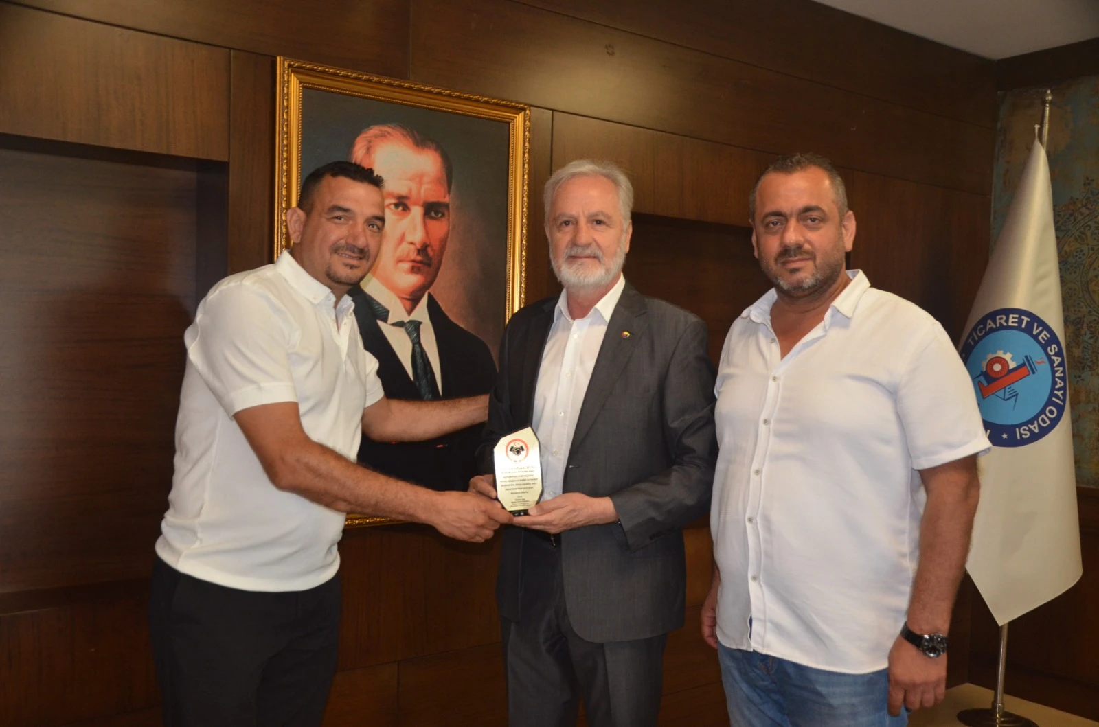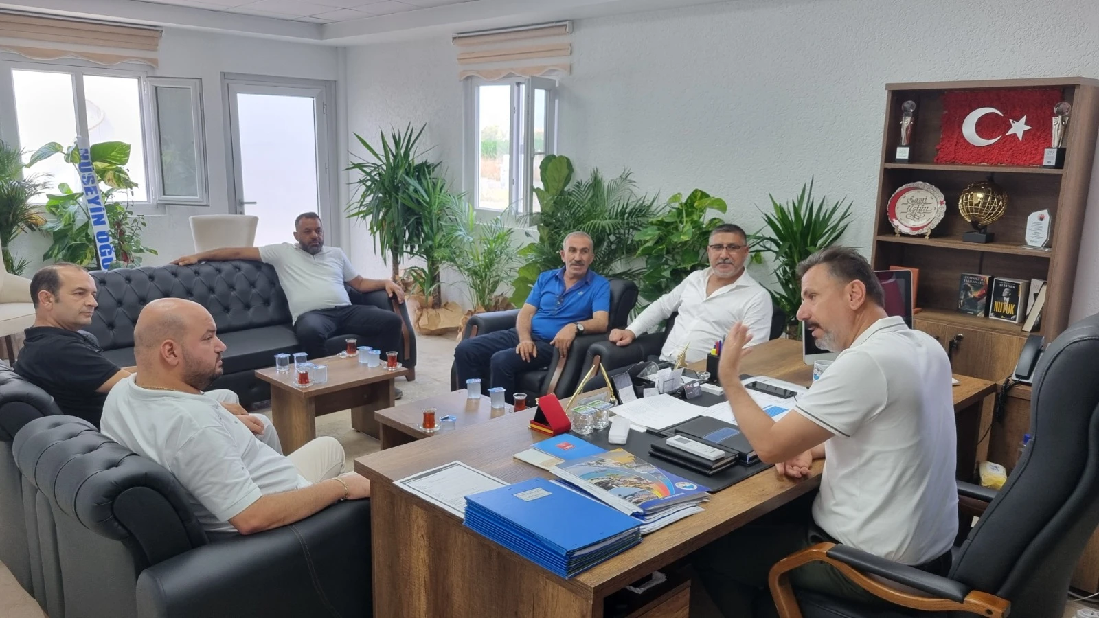 İskenderun Ticaret ve Sanayi Odası 11. Grup Meslek Komite Başkanı Levent Yılmaz, Komite üyeleri Yusuf Şanlı, Muhittin Turgut, Mehmet Kasal ve Ruhi Uysal, Arsuz Belediye Başkanı Sami Üstün’ü makamında ...