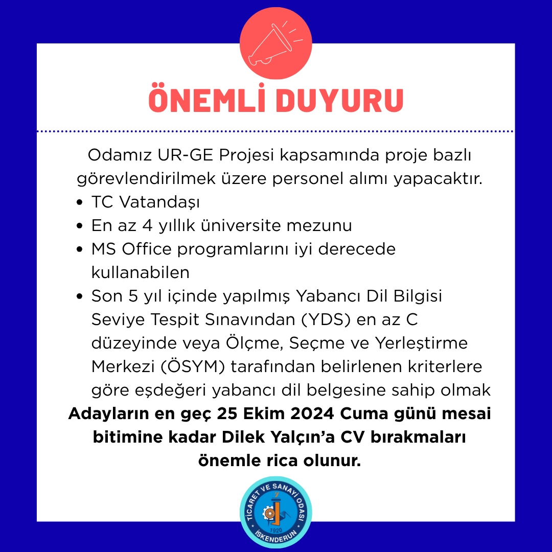 kadar dilekyalcin@iskenderuntso.org.tr adresine gönderilmesini rica ederiz.