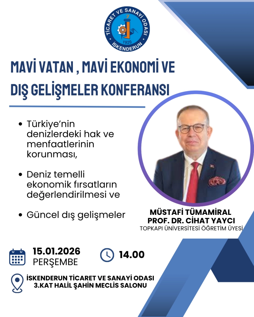 Türkiye’nin denizlerdeki hak ve menfaatleri, deniz temelli ekonomik vizyonu ve güncel dış gelişmelerin stratejik boyutlarının ele alınacağı “Mavi Vatan, Mavi Ekonomi ve Dış Gelişmeler” konulu program, Müstafi Tümamiral Prof. Dr. Cihat Yaycı’nın katılımlarıyla gerçekleştirilecektir.