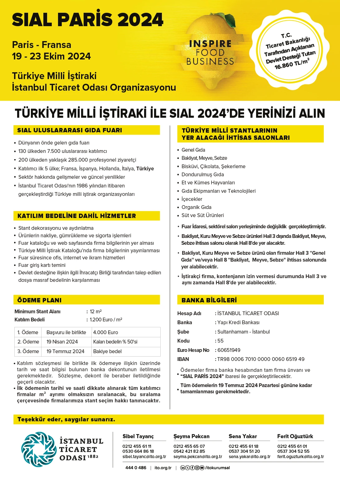 SIAL Uluslararası Gıda Fuarı 19-23 Ekim 2024 tarihinde Paris"te düzenlenecektir.Detaylı bilgi için ekteki belgeleri inceleyiniz.NOT: Katılım sağlamak isteyen üyelerimizin odamız ile iletişime geçmeler...