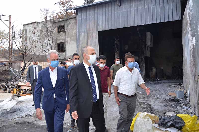 Geçtiğimiz Hafta sonu Belen İskenderun ve Arsuz ilçelerinde meydana gelen orman yangınında iş yerleri yanan İskenderun Ticaret ve Sanayi Odası üyeleri ziyaret edildi.