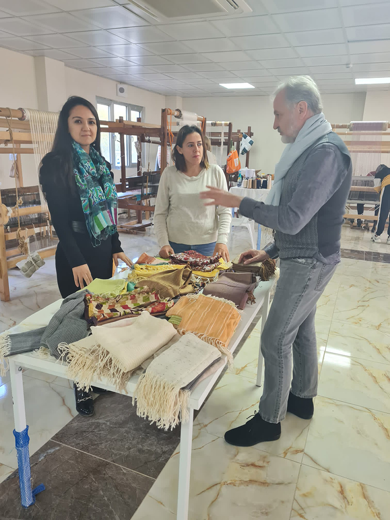 İskenderun Ticaret ve Sanayi Odası Başkanı Levent Hakkı Yılmaz ve İTSO Genel Sekreteri Figen Gül Dönmez Samandağ’ı Belediyesi Kadın Girişimi Kooperatifi Üretim evinde hanımların çalıştıkları ipek dokuma atölyesini ziyaret etti.