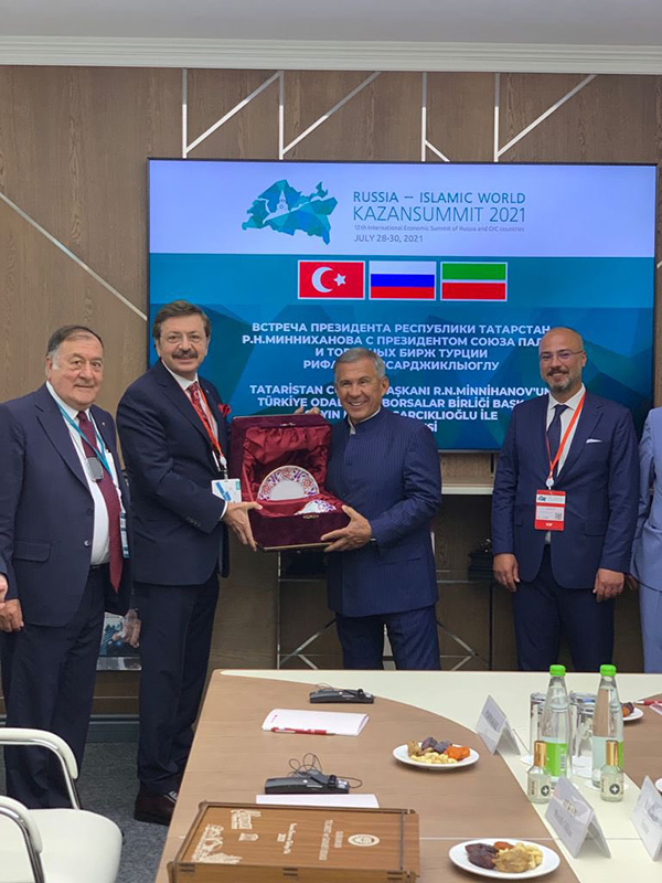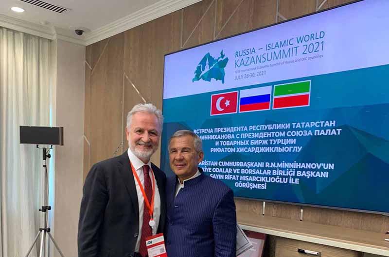 İskenderun Ticaret ve Sanayi Odası Başkanı Levent Hakkı Yılmaz, (TOBB) Başkanı M. Rifat Hisarcıklıoğlu ve TOBB heyeti ile birlikte Kazan Zirvesi 2021 kapsamında Tataristan Cumhurbaşkanı Rüstem Minnihanov ile bir araya geldi.