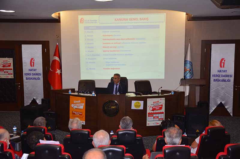 Toplantıda ayrıca, Hatay Gelir İdaresi Gurup Müdürü Metin Akkan da sine vizyon destekli sunum yaparak, meclis üyelerine detaylı bilgiler verdi ve bu yapılandırmaların üyeler için önemli bir fırsat olduğuna dikkat çekti.