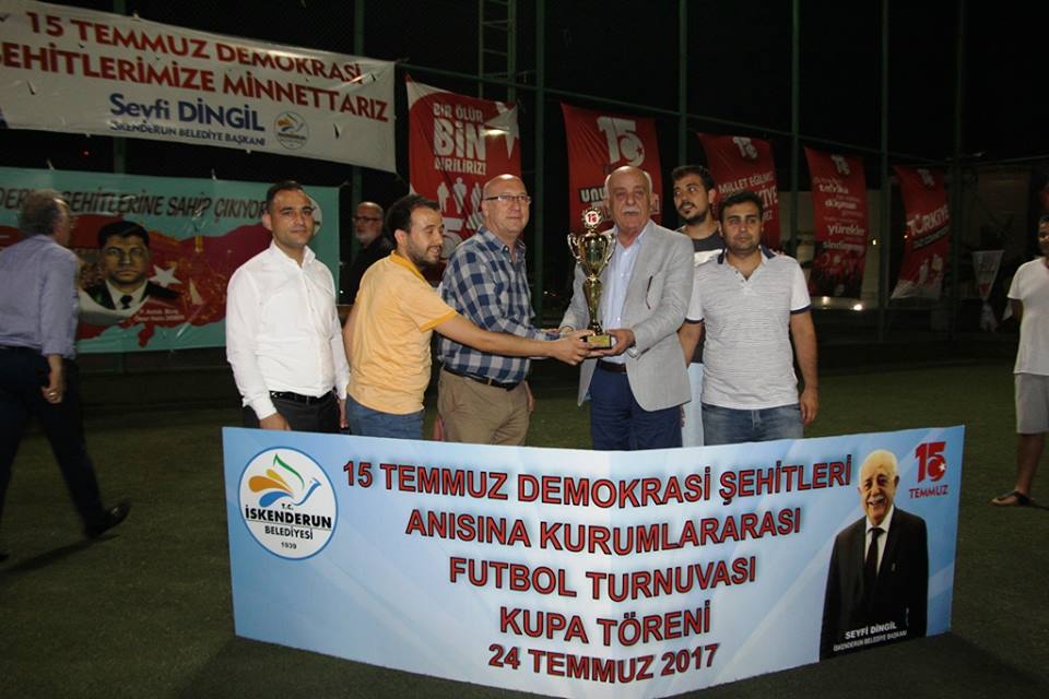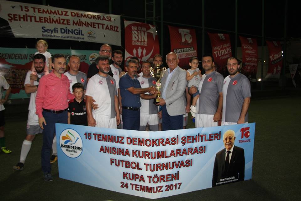 İskenderun Belediyesi Tarafından 15 Temmuz Demokrasi şehitlerini anma, kurumlar arası Futbol turnuvalarında dostluk kazandı. 27 Takımın kıyasıya mücadele ettiği müsabakalarda Hatay Barosu Futbol Takımı birinci olurken, İSTE ikinciliği, İskenderun Ticaret ve Sanayi Odası’da üçüncülüğü elde ettiler. Turnuvanın final maçını protokol ile birlikte izleyen İskenderun Belediye Başkanı Seyfi Dingil, turnuvaya katılan takımları tebrik etti ve dereceye giren futbolculara kupalarını takdim etti. İskenderun Ticaret ve Sanayi Odası Başkan Yardımcısı Muhsin Yeter de kupa töreninde hazır bulundu ve derece elde eden takımları tebrik etti.