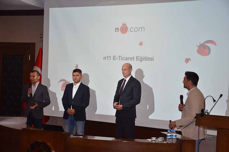 Yoğun katılımla gerçekleşen E-Ticaret eğitimine n11.com Tedarik Zinciri ve Uluslararası İş Geliştirme Direktörü Ramazan Altınay, Grup müdürü Onur Bardak, n11.Com Güneydoğu Anadolu Bölgesi Satış müdürü Cihangir Eraslan ve n11.com İş Ortakları Eğitmeni Aykut Baskın katıldılar.