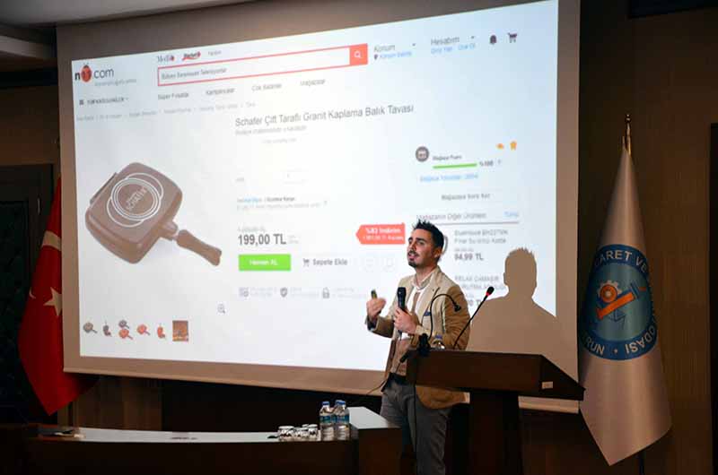 Yoğun katılımla gerçekleşen E-Ticaret eğitiminde n11.com şirketinin Direktörü Ramazan Altınay Grup müdürü Onur Bardak ve eğitmen Aykut Baskın sine vizyon destekli olarak eğitime katılanlara detaylı bilgiler verdiler.