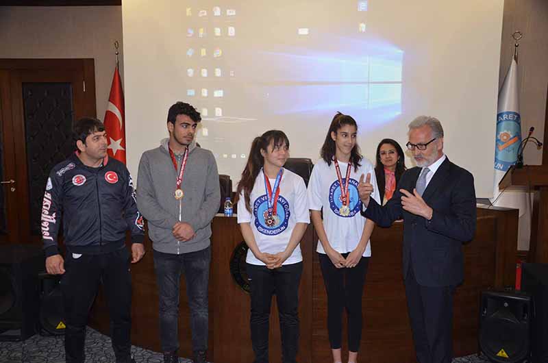 İTSO Mart ayı Meclisinde, Türkiye Muay Thai Şampiyonasına Türkiye 1.’si Tuana Dokumacı, Türkiye 2.’si Hatice Şimşek, Türkiye 3.’sü M. Ali Alban ve Antrenörleri Serdar Keskin’e başarılar dileyen İTSO Başkanı Yılmaz, Takım Sporcularına plaket takdim etti. Türkiye Muay Thai Şampiyonası Antrenörü Serdar Keskin ve sporcular da desteklerinden dolayı İTSO yönetimine teşekkürlerini ifade ettiler.