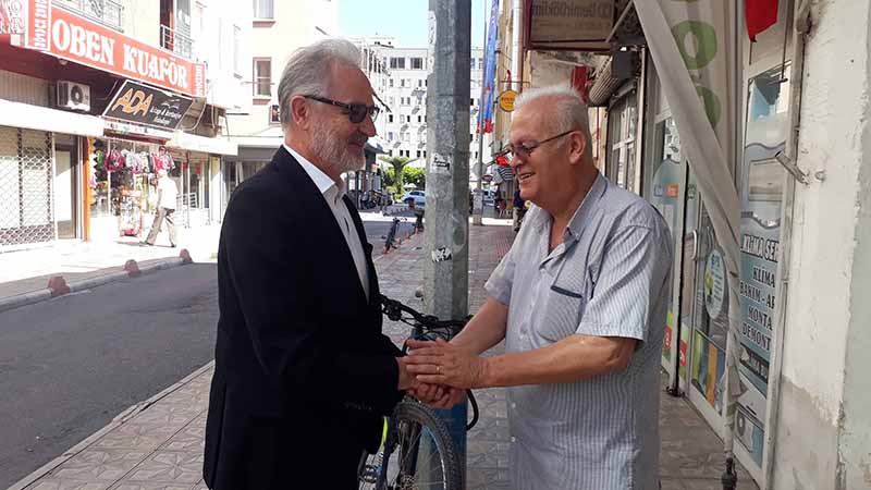 Esnaf ziyaretinde İTSO Başkanı Levent Hakkı Yılmaz, İTSO Başkan yardımcısı Muhsin Yeter, İTSO Muhasip üye Gassan Kuran, İTSO Genel sekreteri Figen Gül Dönmez yer aldı.