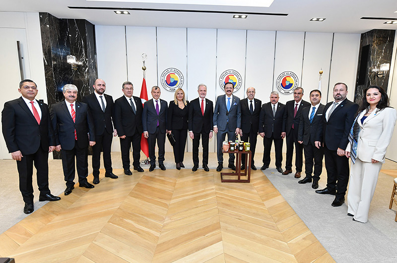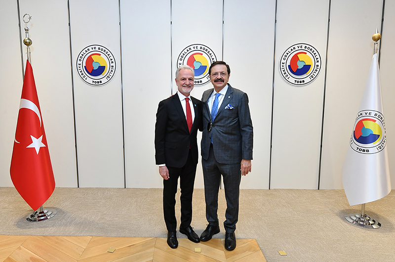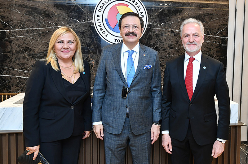 İskenderun Ticaret ve Sanayi Odası Yönetim Kurulu Başkanı Levent Hakkı Yılmaz, Meclis Başkanı Zeki Altun, beraberlerindeki heyet ile birlikte Türkiye Odalar ve Borsalar Birliği (TOBB) Başkanı M. Rifat Hisarcıklıoğlu’nu makamında ziyaret etti.