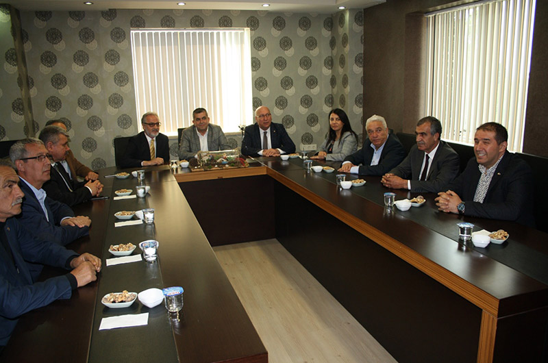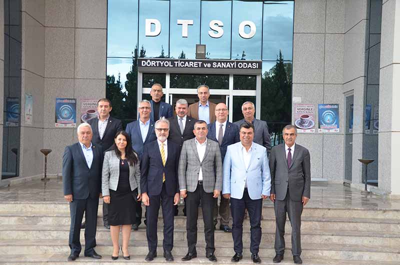 Dörtyol Ticaret ve Sanayi Odası yönetiminin ziyaretinde, İTSO Başkanı Levent Hakkı Yılmaz, İTSO Başkan yardımcıları Muhsin Yeter, Mahir Taner İTSO Muhasip Üye Gassan Kuran, İTSO yönetim kurulu üyeleri Müfit Tennioğlu, Raşit Özyurt, Hıdır Güneş ve Selma Yılmaz yer aldı.
