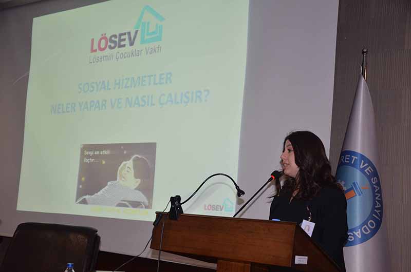 LÖSEV Adana Şubesin Halkla İlişkiler sorumlusu Buğse Çakan sunumunda, “Unutmayalım ki Löseminin tedavisi vardır. Önce doktorlarınız, hemşireleriniz sonra Lösev ailemiz sayesinde bu hastalığı yeneceksiniz. Lösev kurulmadan önce tedavi ve başarı şansı yok denecek kadar az iken 20 yıl içerisinde hem tıptaki imkanların gelişmesi hem de vakfımızın sağladığı destekler ile bu başarı oranı yüzde 90’ların üzerine çıktı. Unutmayın ki, Lösev yüzlerce çalışanı, yüz binlerce akrabası ve milyonlarca gönüllüsü ile kocaman mutlu bir ailedir. Sizlerden ricamız çevrenizde bu tür hastalar varsa bizlere bildirin. Bizlerde yardımcı olalım. Son yıllarda özellikle sosyal medya üzerinden çok sayıda hastamıza ulaşıyor, tedavilerine başlıyor ve çok iyi sonuçlar alıyoruz. Bu gün İskenderun’dayız ve bizlere bu imkânı sağlayan ve bizleri sizlerle buluşturan Ticaret ve Sanayi Odamıza teşekkür ediyoruz” dedi.