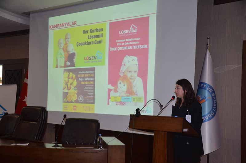 İskenderun Ticaret ve Sanayi Odasının ev sahipliğinde Lösemili Çocuklar Vakfı (LÖSEV) Adana Şubesinden Halkla İlişkiler sorumlusu Buğse Çakan, Sunum yaparak, faaliyetleri hakkında katılımcılara bilgiler verdi.