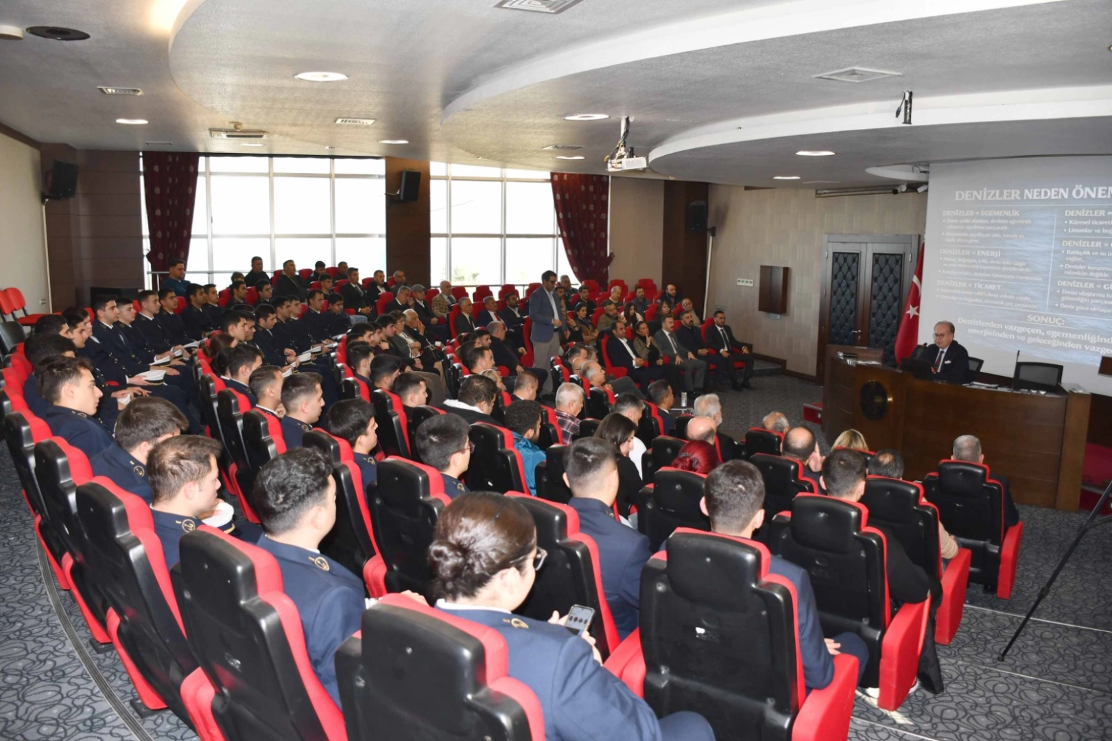 Programda, Türkiye’nin denizlerdeki hak ve menfaatleri, deniz temelli ekonomik vizyonu ve güncel dış gelişmelerin stratejik boyutları ele alınırken, katılımcıların soruları da yanıtlandı.