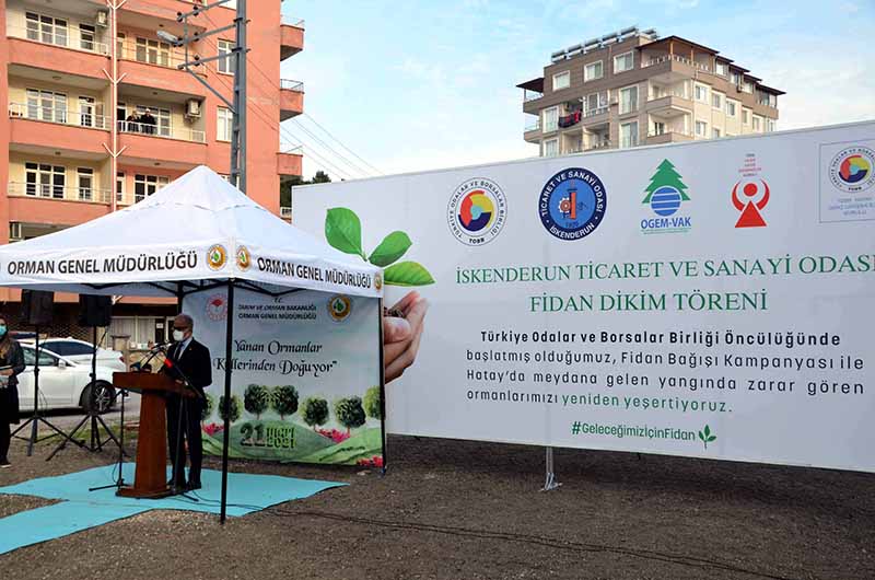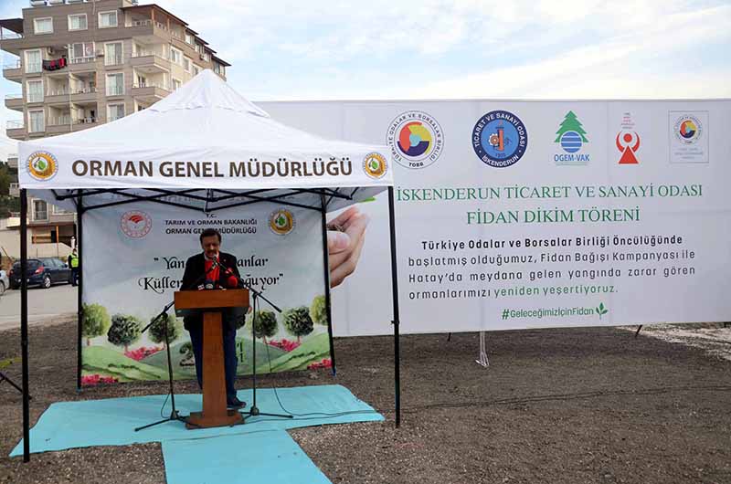 Hatay’ın İskenderun Belen ve Arsuz ilçelerinde yaşanan yangınlarda zarar gören ormanlık alanların ağaçlandırma çalışmalarına TOBB’un önderliğinde Oda ve borsalardan destek geldi.