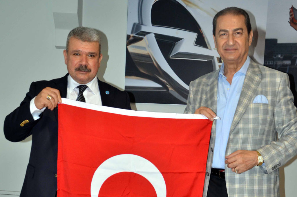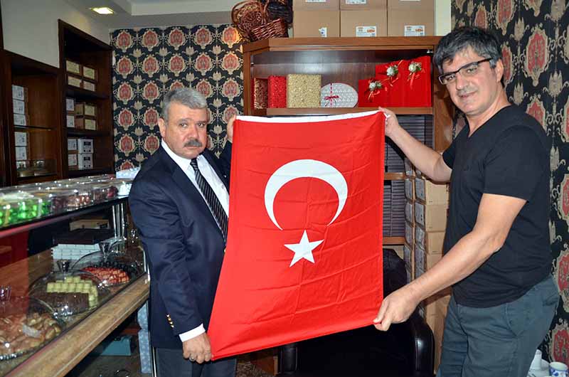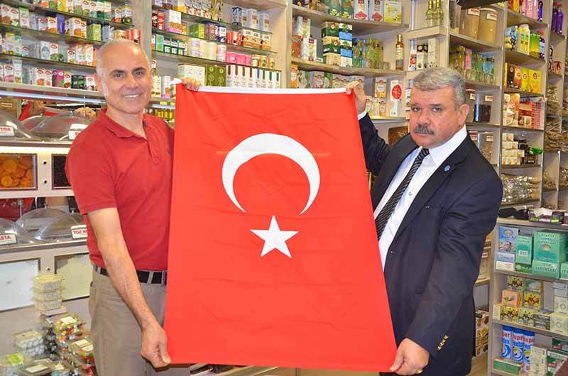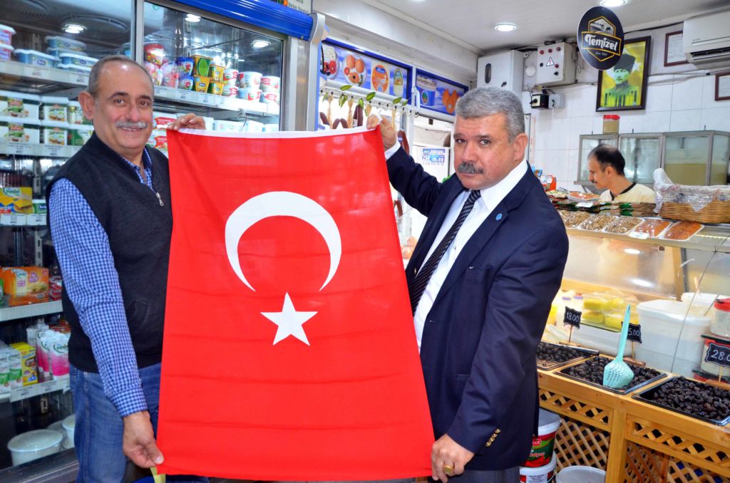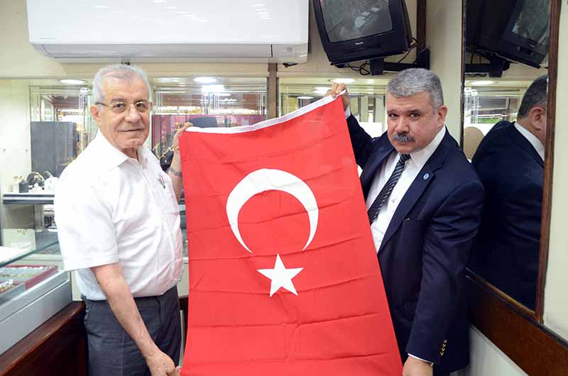 İTSO muhasip üye Gassan Kuran Merih Kuyumculuk sahibi Mişel Aygün’ü ziyaret ederek Türk Bayrağı takdim etti. İskenderun’un en ve İTSO’nun en eski kuyumcu esnaflarından olan Mişel Aygün’ü iş ye...