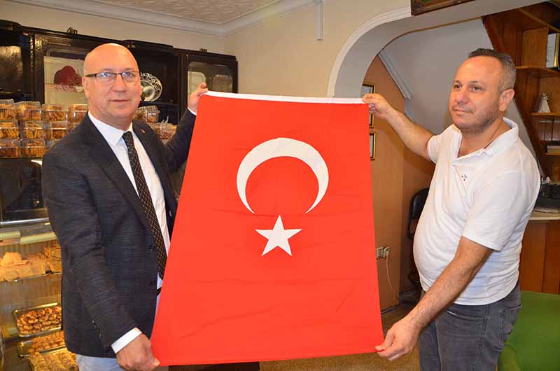 İTSO Başkan yardımcısı Muhsin Yeter, Esnafa Türk Bayrağı ve TOBB tarafından ülke genelinde Enflasyonla Top yekûn mücadele ‘VARIZ’ en az yüzde 10 indirim yazılı afişi Kotçu Nazım Dikere verdi. ...
