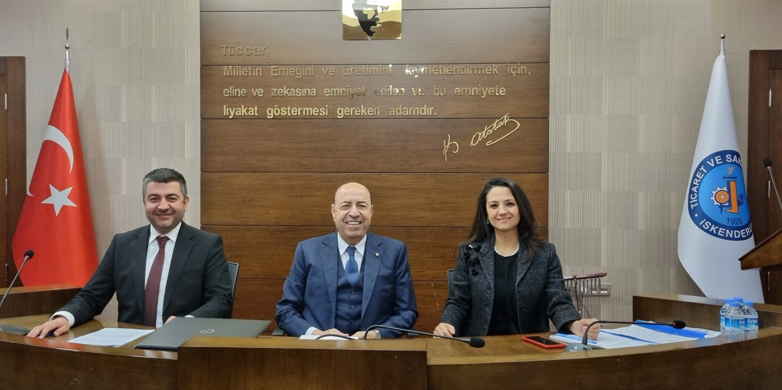 İskenderun Ticaret ve Sanayi Odası Yönetim Kurulu Başkanı Levent Hakkı Yılmaz ve Yönetim Kurulu üyeleri, Hatay Valisi Mustafa Masatlı ve MÜSİAD Genel Başkanı Mahmut Asmalı’nın katılımıyla gerçekleştir...
