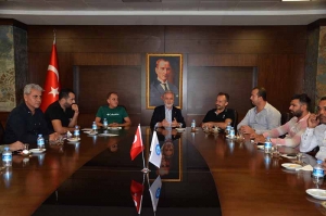 TFF Adana Bölge müdürü Akif Oflaz ve Ümit Milli Takım Antrenörü Bülent Akyıldız, İskenderun Ticaret ve Sanayi Odası Başkanı Levent Hakkı Yılmaz’a hayırlı olsun ziyaretinde bulundular. İTSO Başka...