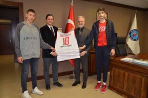 Basketbol U-15 Milli Takımına Seçilen genç sporcular İskenderun Ticaret ve Sanayi Odasını Ziyaret Ettiler. İskenderun Güney Akademi Gençlik ve Spor kulübü oyuncuları Ali Arda Yücel ve Efe Karad...