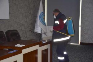 İskenderun Ticaret ve Sanayi Odası Korona virüs (COVİD-19) riskine karşı Hatay Büyük Şehir Belediyesi ekipleri tarafından dezenfeksiyon ve sterilizasyon çalışmaları gerçekleştirildi. İskenderun T...